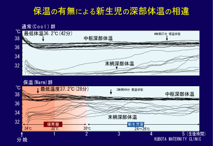 | (1) cool群(分娩室:24〜26℃)における体温変動の観察(上段) | |